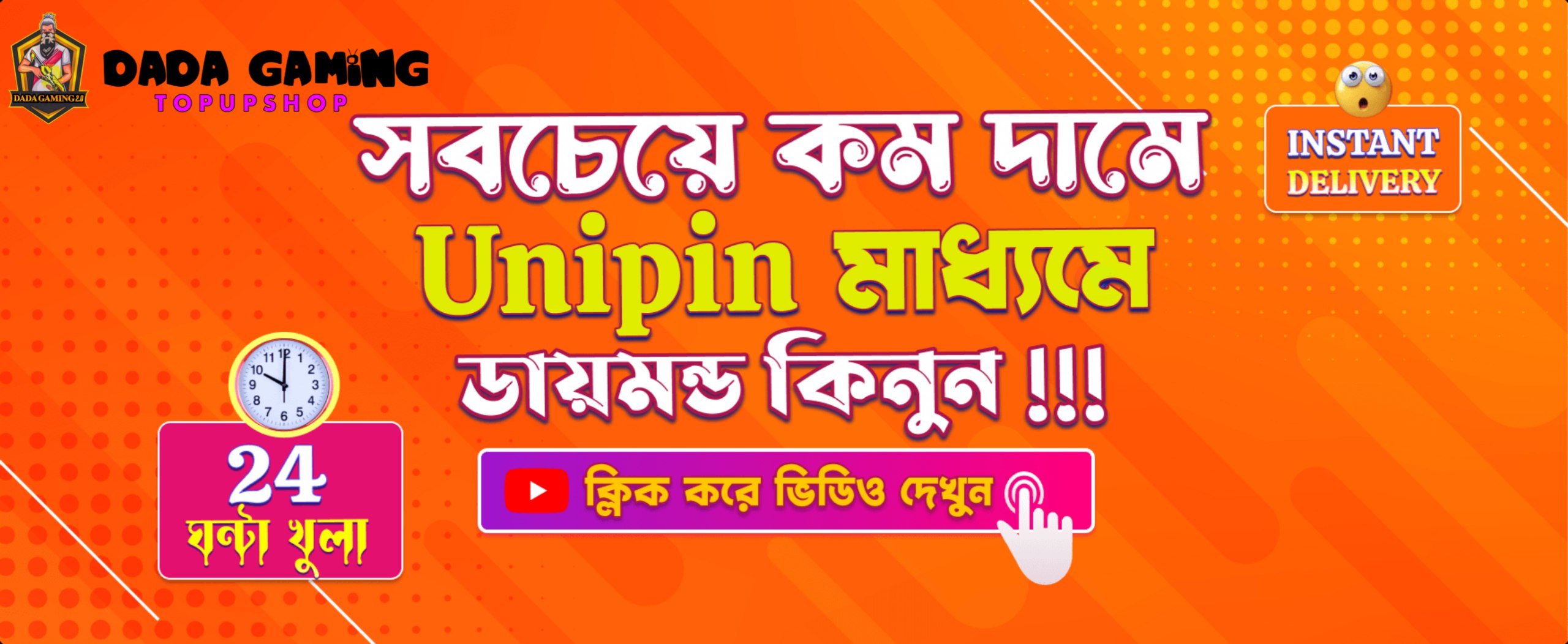DADA GAMING TOP UP SHOP সাইট রাত দিন ২৪ ঘন্টা চালু থাকে। AI বটের মাধ্যমে মাত্র ৩০ সেকেন্ডে যে কোন অর্ডার ডেলিভারি দেওয়া হয়। Topup Service [ 9 AM - 10 PM ]
